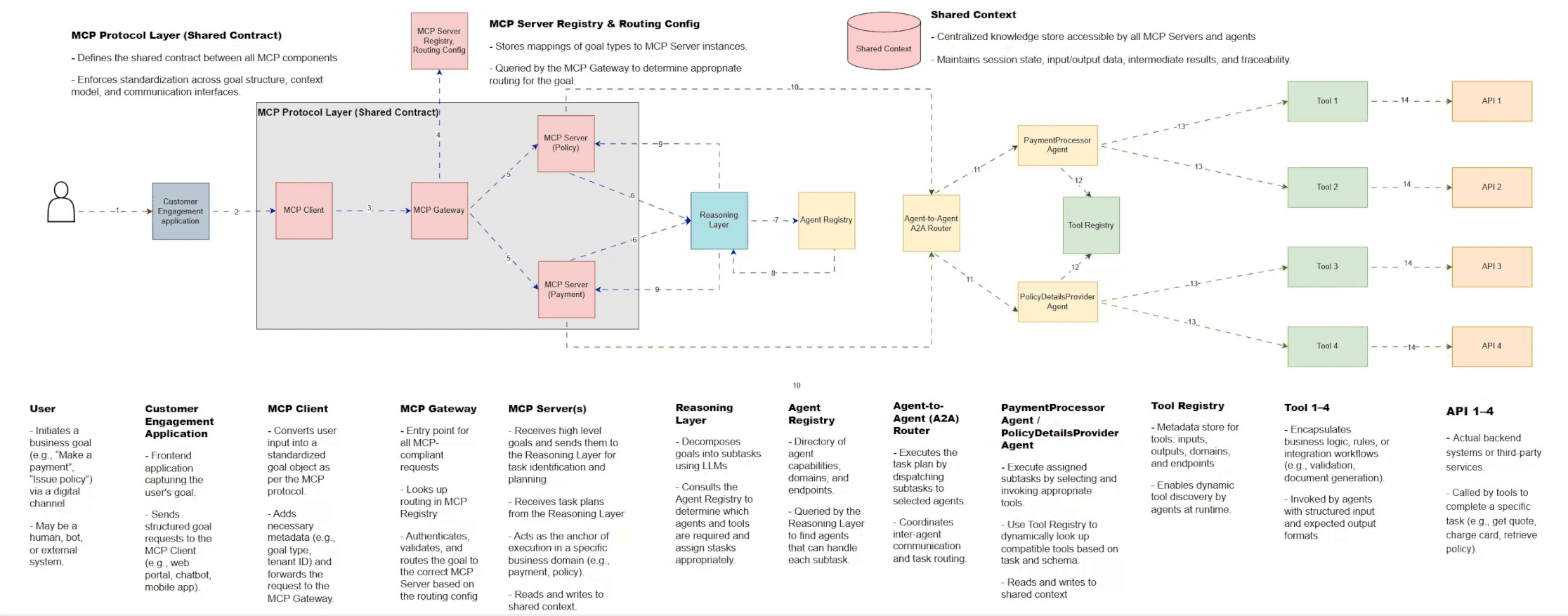 🔒 This is where governance lives — it ensures requests are valid, secure, and routed to the right domain. It's like the traffic cop of your agentic platform.