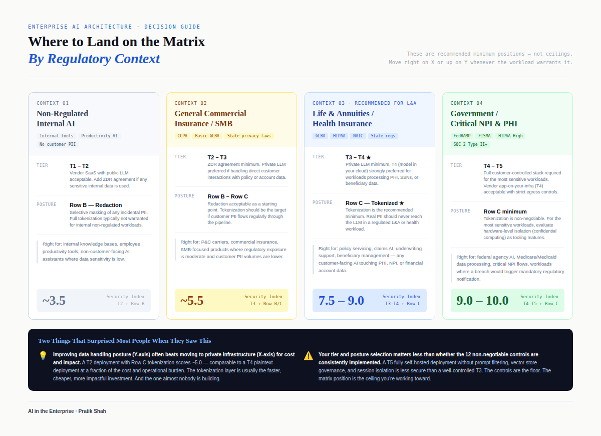 This lens matters a lot in financial services and insurance because it opens up better options than simply “send raw PII through everything” or “move everything on-prem immediately.” It gives teams a way to reduce exposure materially while still delivering customer-facing capabilities at speed.